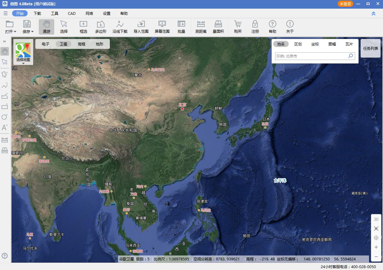 1、完成软件安装双击软件进入软件微图操作界面,该界面可以进行卫星地图浏览